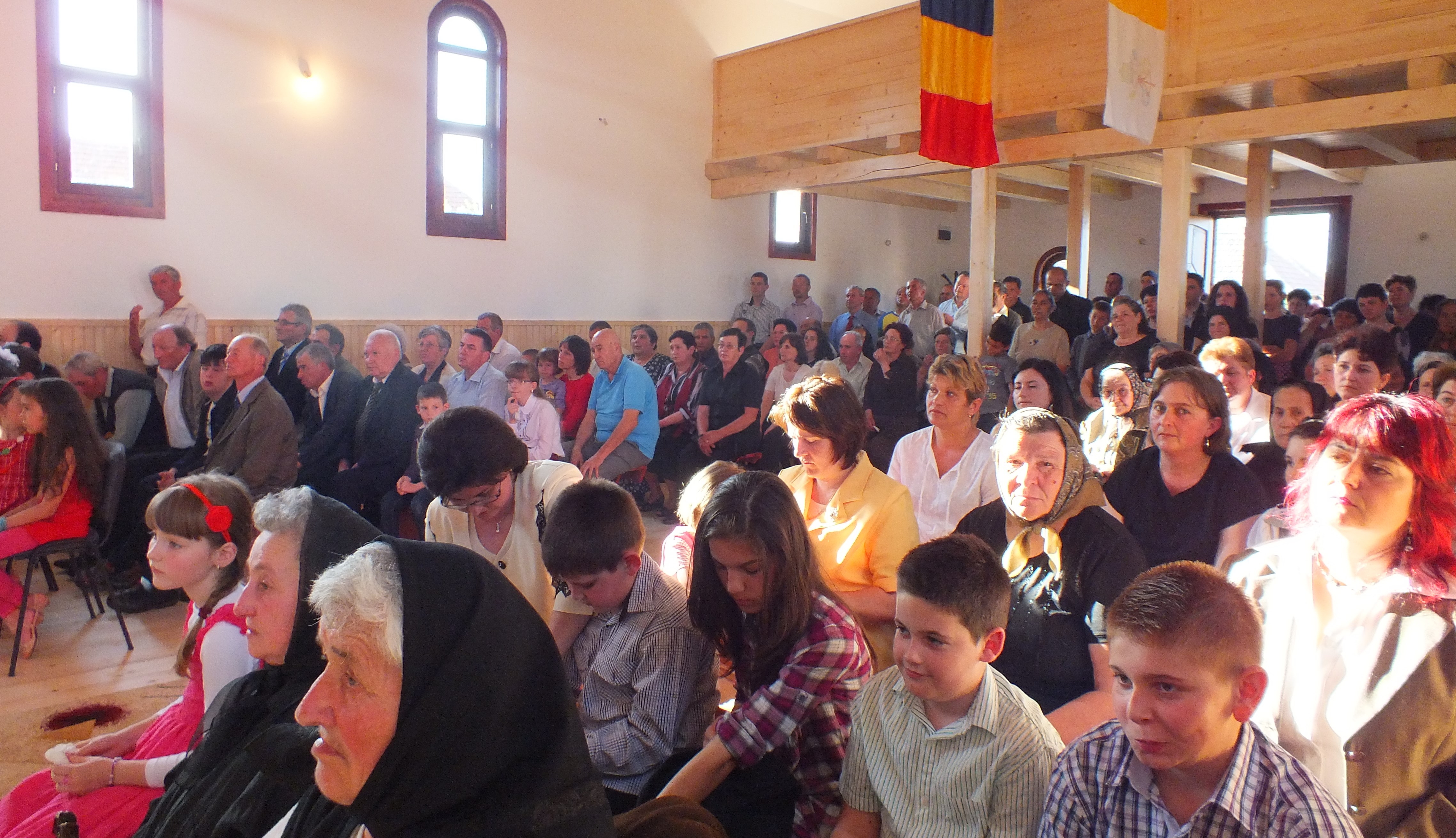 Preasfinţia Sa, însoţit de un sobor de preoţi, a săvârşit slujba sfinţirii apei cu binecuvântarea noii biserici, urmată de rânduiala Vecerniei. Cuvântul de învăţătură al Ierarhului, însoţit de binecuvântarea şi felicitările Preafericirii Sale Lucian Cardinal Mureşan, a fost un moment de profundă meditaţie pentru toţi cei prezenţi. Plecând de la modul umil în care Mântuitorul îşi face intrarea în Ierusalim, Preasfinţia Sa a subliniat necesitatea ca Acesta să fie primit nu doar într-un lăcaş nou de cult, ci şi în Ierusalimul sufletului fiecărui credincios, îndemnând astfel ca parohul împreună cu întreaga comunitate, aşa cum au construit o frumoasă biserică exterioară, vizibilă în mijlocul comunei, tot aşa să zidească biserica interioară, sufletească, un Ierusalim al inimilor în care Împăratul Cristos să fie mereu primit triumfal.